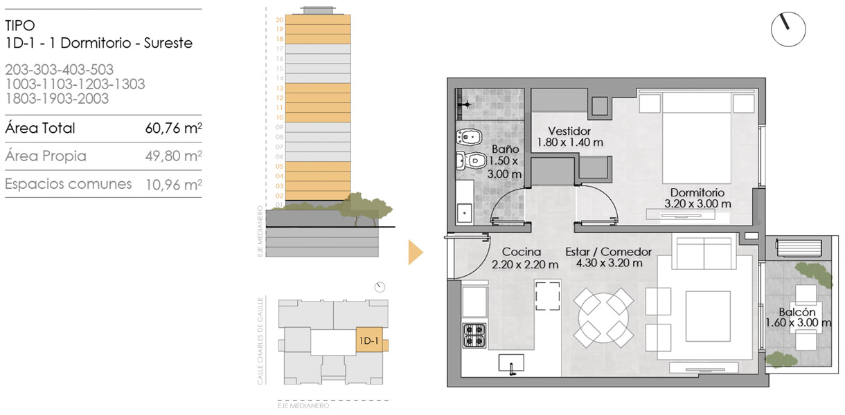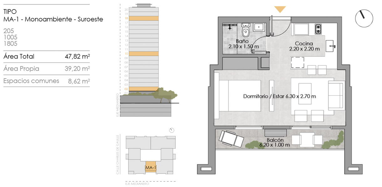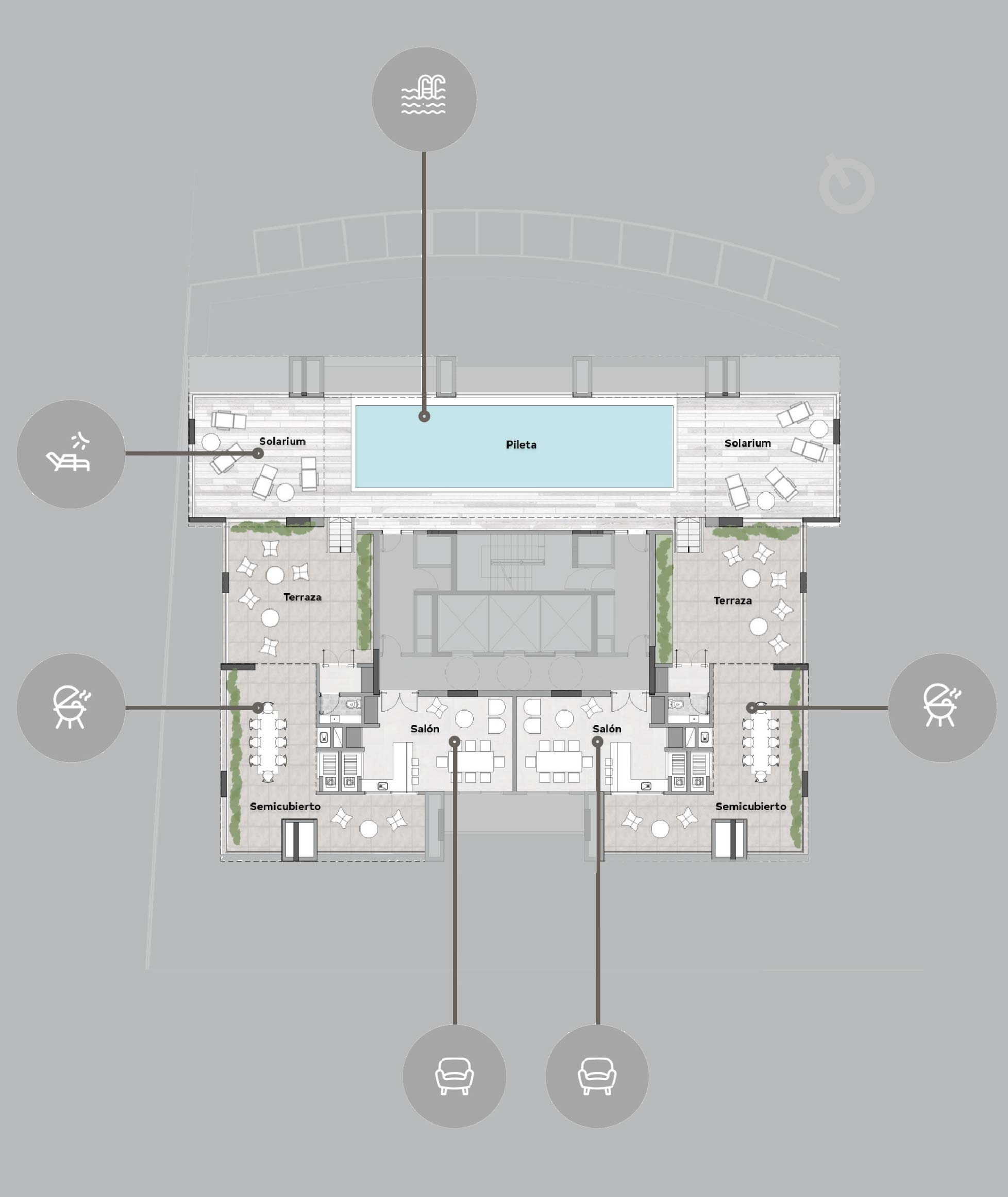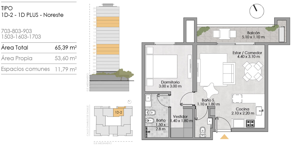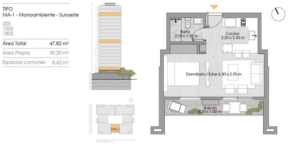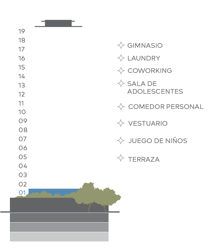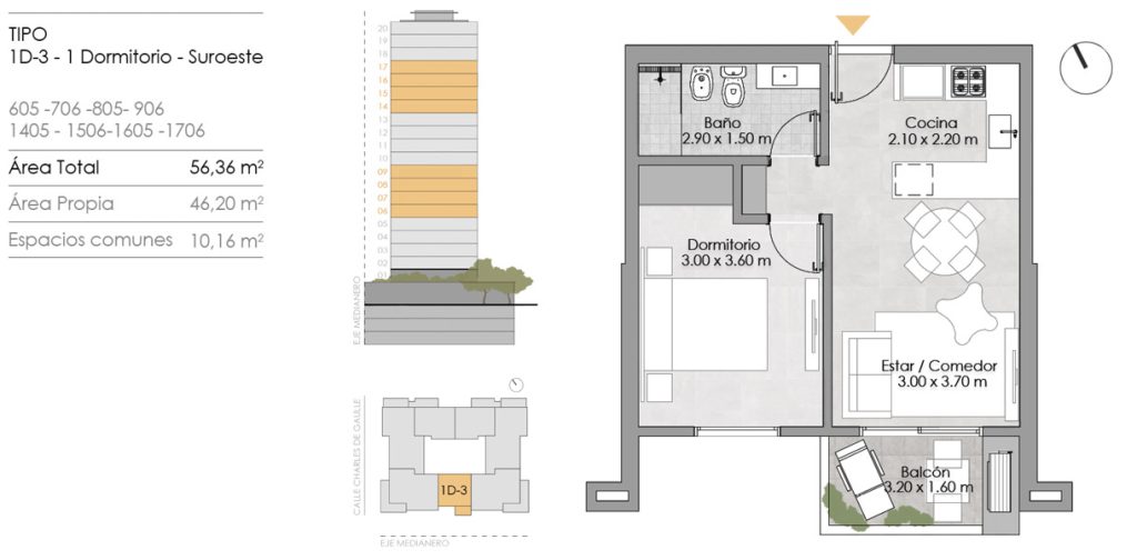 En ella encontrarás departamentos del tipo Lofts, de 1 y hasta 3 dormitorios, estos últimos también en variantes dúplex, todos con amplios ventanales que te permitirán disfrutar del entorno.