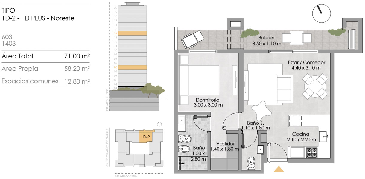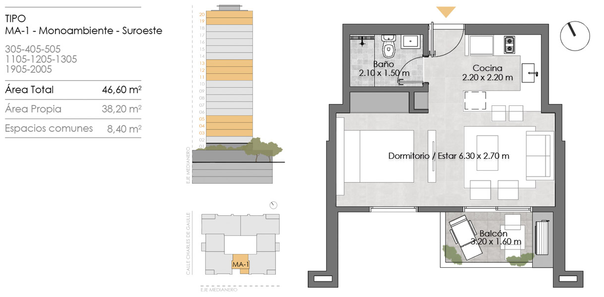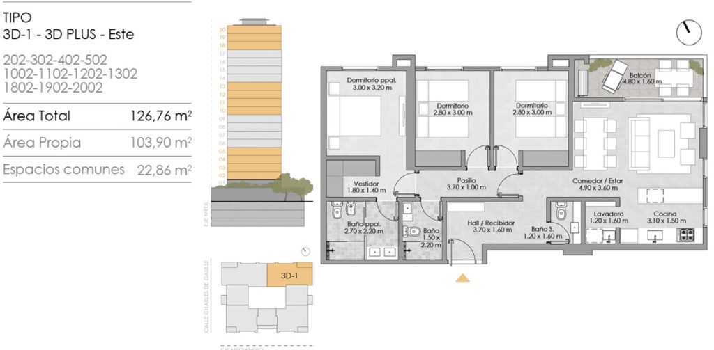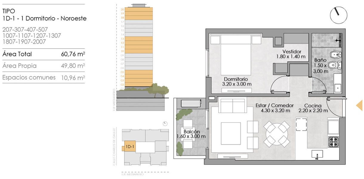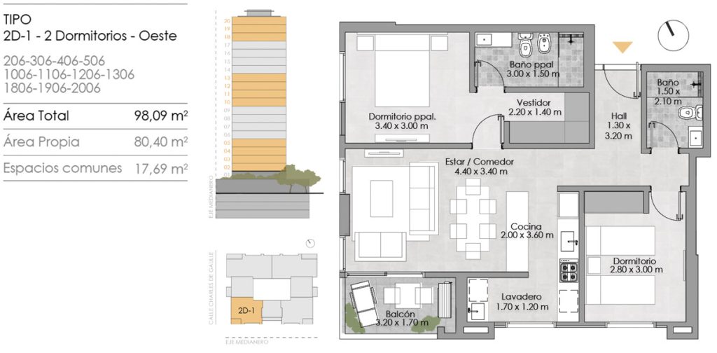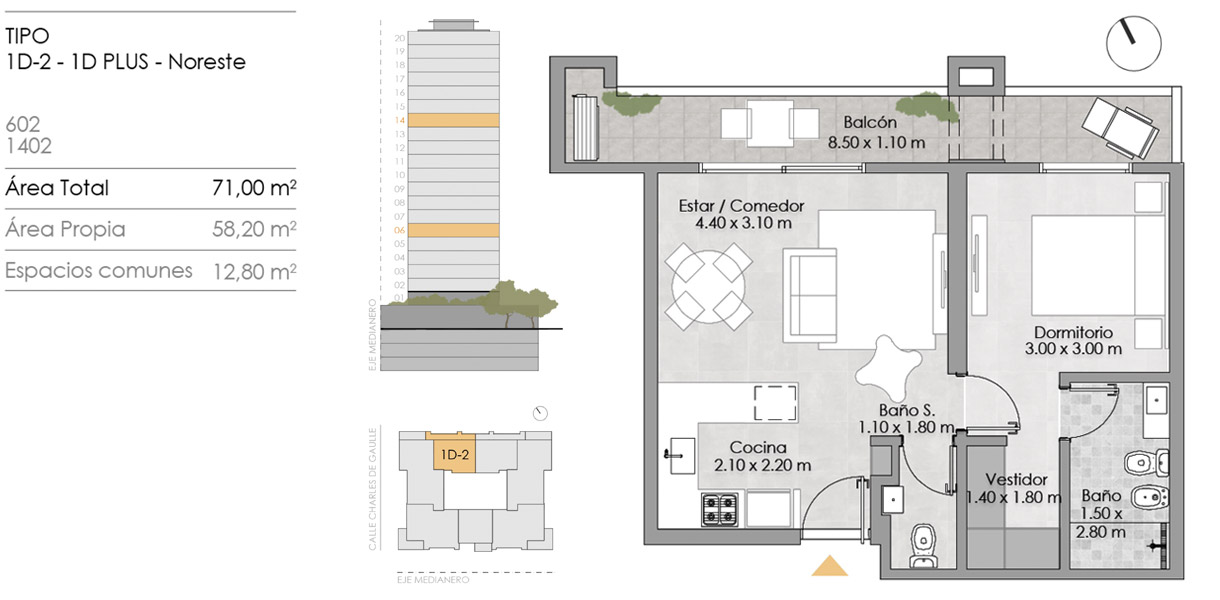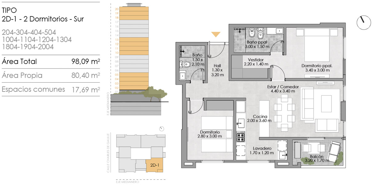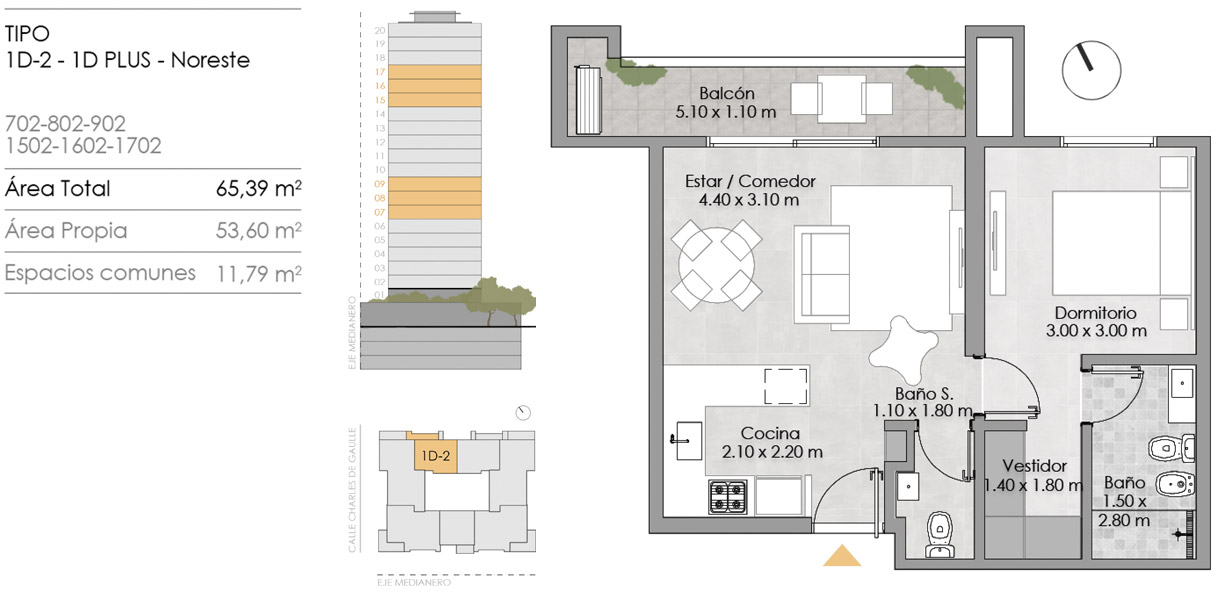 En ella encontrarás departamentos del tipo Lofts, de 1 y hasta 3 dormitorios, estos últimos también en variantes dúplex, todos con amplios ventanales que te permitirán disfrutar del entorno.